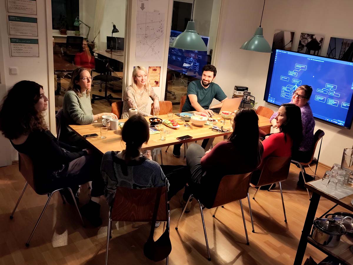 Each event lasts between 1.5 and 2 hours. Feel free to stay a bit longer to finish the snacks, chat with other participants, and deepen the conversation.